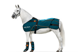 Hestedækkenet i BEMER Horse-Set er ideelt til anvendelser på store områder. BEMER-signalfeltet når alle hestens neuralgiske punkter. Hestedækkenet er ergonomisk gennemtænkt, udstyret med åndbare indlæg og kan nemt tilpasses til enhver hestestørrelse ved hjælp af den simple indstillingsmekanisme.